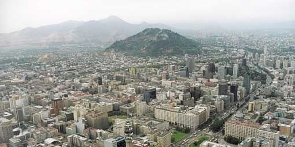 Vista aérea del sector de la Alameda hacia el cerro San Cristóbal, 2001
