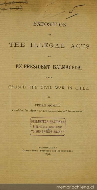 Exposition of the illegal acts of ex-president Balmaceda which causes the civil war in Chile