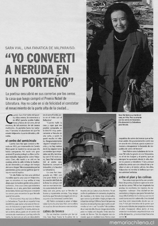 Caras. Santiago : Edit. Andina, 1988- (Santiago : Edit. Antártica) v., n° 357, (7 dic. 2001), p. 86