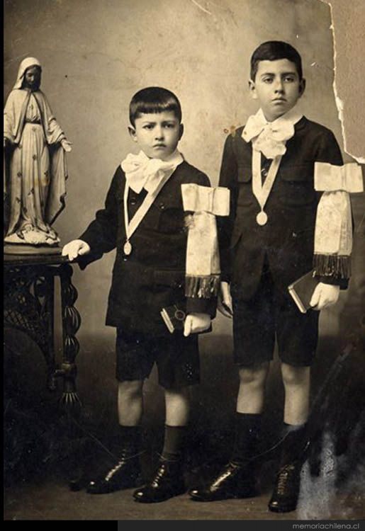 Luis Hernández Parker junto a su hermano Eduardo en su Primera Comunión, 1918