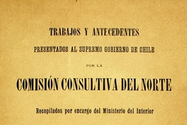Trabajos y antecedentes presentados al Supremo Gobierno de Chile por la Comisión Consultiva del norte / recopilados por encargo del Ministerio del Interior por Manuel Salas Lavaqui. Santiago de Chile : Impr. Cervantes, 1908. xvi, 898 p.