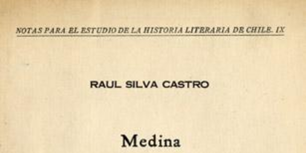 Materias: Medina, José Toribio, 1852-1930Literatura Chilena - Historia y Crítica