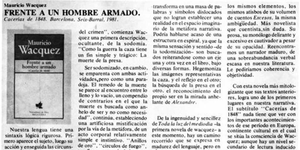 Materias: Wacquez, Mauricio, 1939-2000. Frente a un Hombre Armado