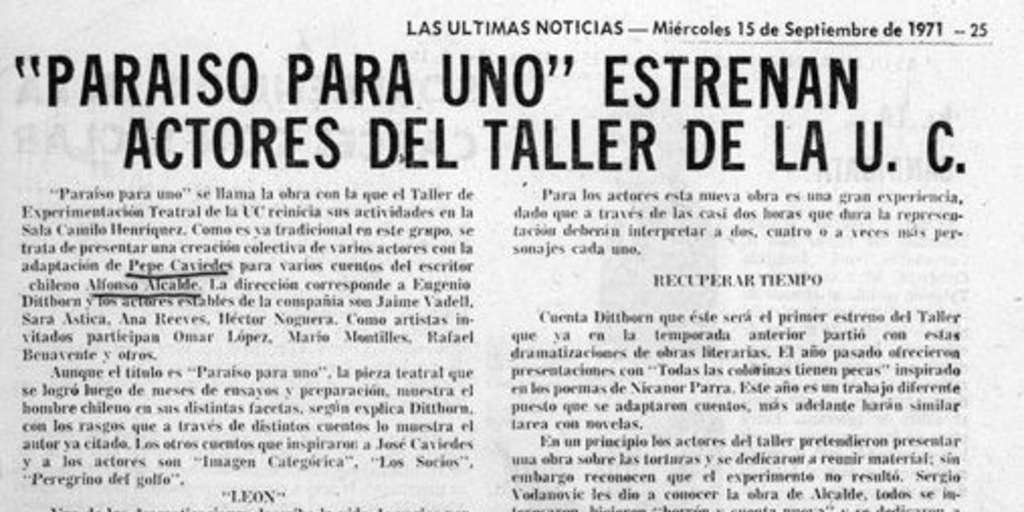 Las Últimas Noticias. Santiago : Talleres El Mercurio, 1902- v., (15 sep. 1971), p. 25