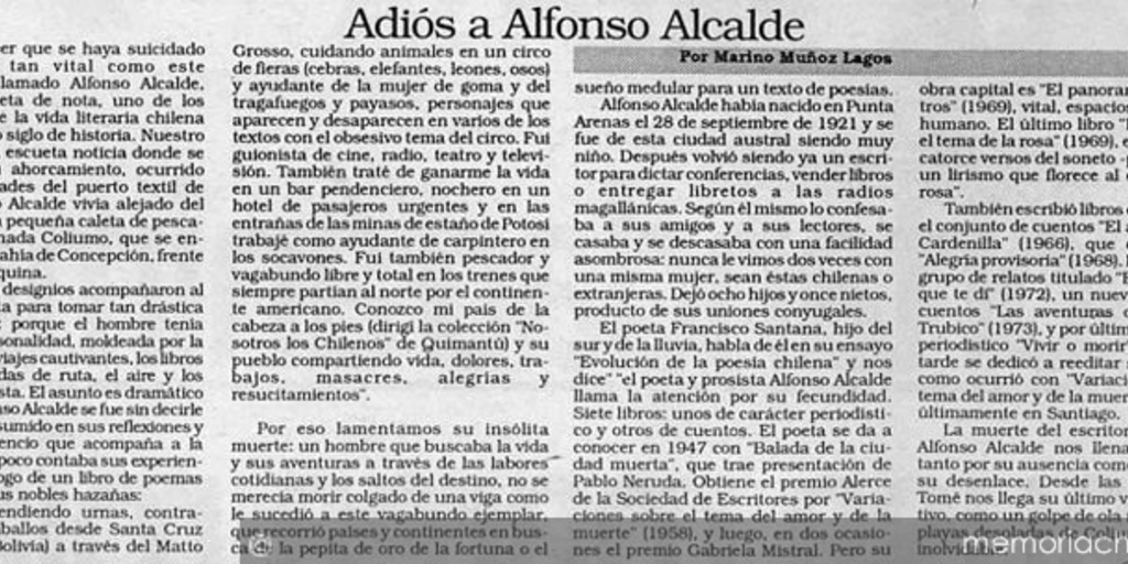 Materias: Alcalde, Alfonso, 1921-1992