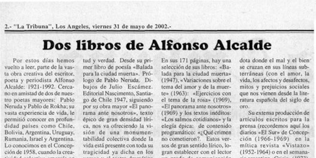 La Tribuna / Sociedad Periodística Bío-Bío. Los Angeles : La Sociedad, 1958- v., (31 mayo 2002), p. 2