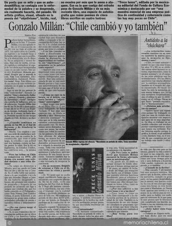 Materias: Millán, Gonzalo, 1947-2006 - Entrevistas
