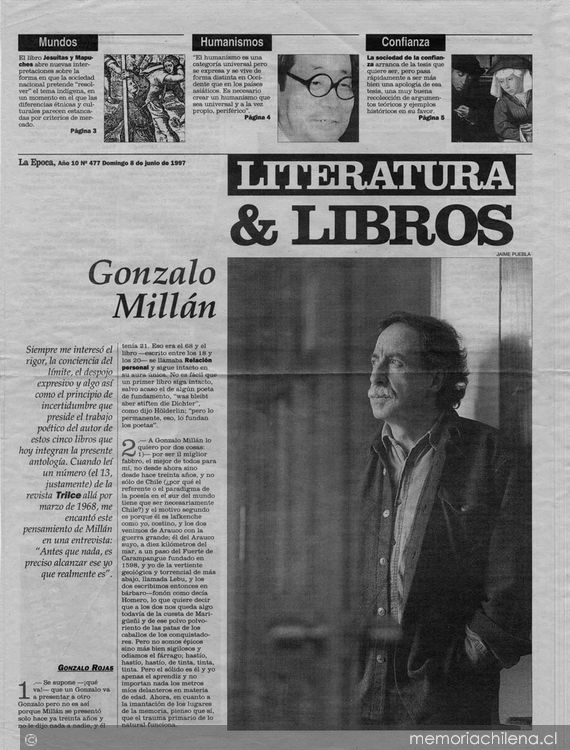 La Época. Santiago : Impresiones y Comunicaciones, 1987-1998 (Santiago : Impasa) 273 v., (8 jun. 1997), p. 1-2 (suplemento)