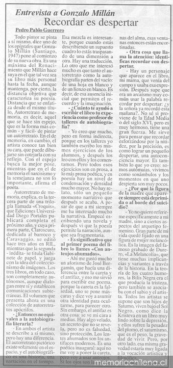 Materias: Millán, Gonzalo, 1947-2006 - Entrevistas