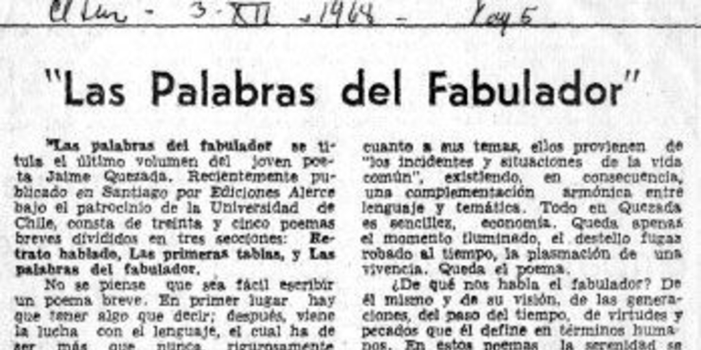 Publicado en El Sur (Santiago), 3 de diciembre de 1968, p. 5