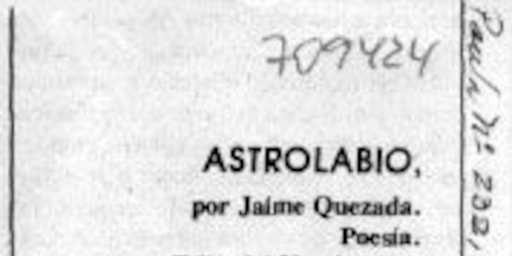 Materias: Autores ChilenosQuezada, Jaime, 1942- . Astrolabio