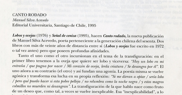 Revista chilena de literatura / Universidad de Chile, Departamento de Literatura. Santiago : El Departamento, 1970- v., no. 49, (nov. 1996), p. 163-164