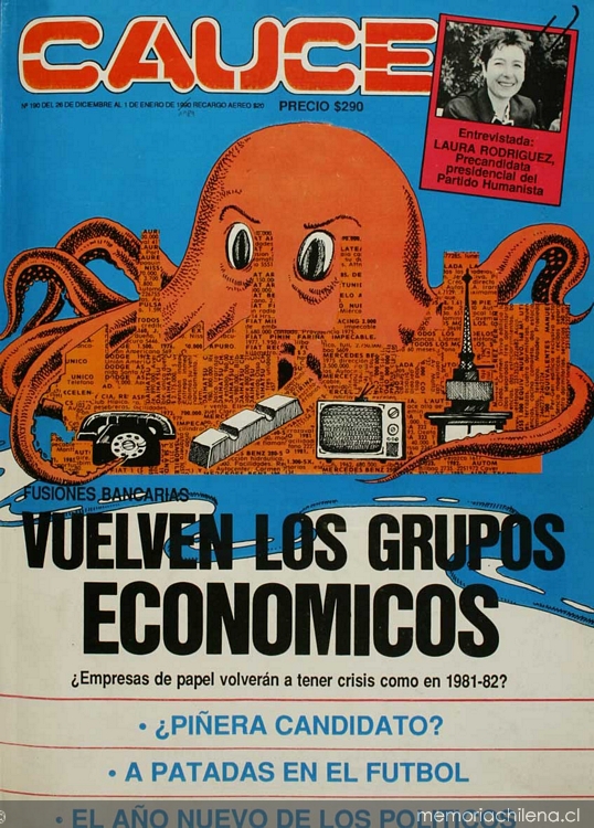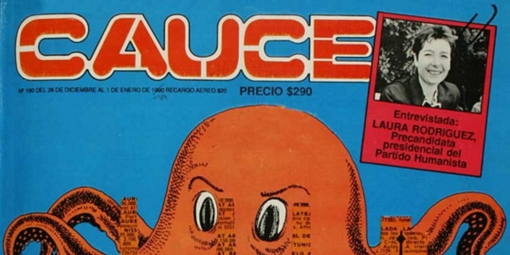 Cauce. Santiago : Soc. Ed. La República, 1983-1989 (Santiago : Tecnoprint) 7 v., nº 190-199, (26 dic. 1988-27 mar. 1989)