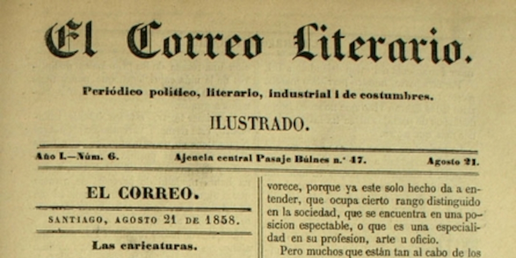 El correo literario: año I, número 6, 21 de agosto de 1858