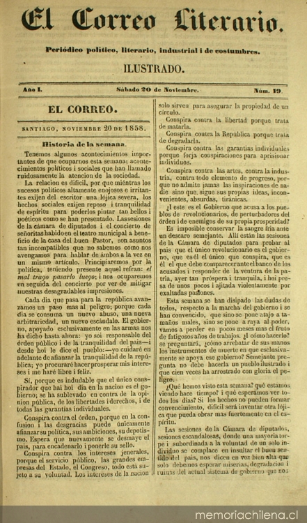El Correo literario: año I, número 19, 20 de noviembre de 1858