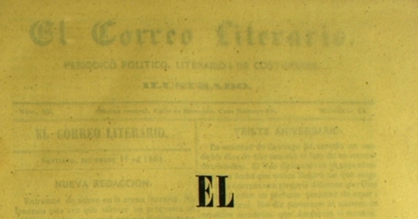 El Correo literario : periódico político, literario y de costumbres, ilustrado. Santiago : Impr. de la Sociedad, 1864-1865. 28 nos., [62] h. de láms. año 1, nº23, (11 dic. 1864), 15 p.