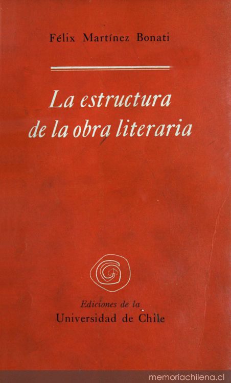 La estructura de la obra literaria : (una investigación de filosofía del lenguaje y estética) / Félix Martínez Bonati. Santiago : Ediciones Universidad de Chile, 1960. 171 páginas