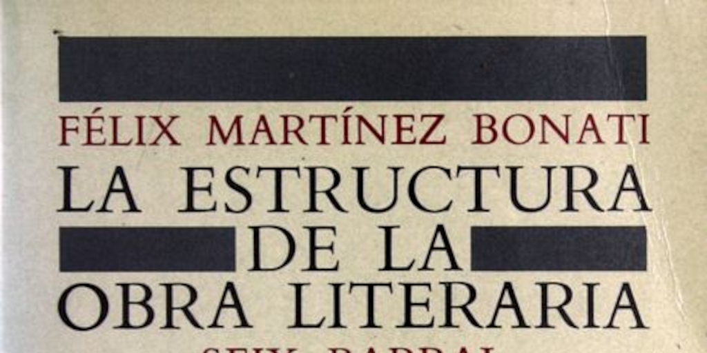 La estructura de la obra literaria : una investigación de filosofía del lenguaje y estética / Félix Martínez Bonati. 2a. edición revisada Barcelona : Seix Barral, 1972. 244 páginas