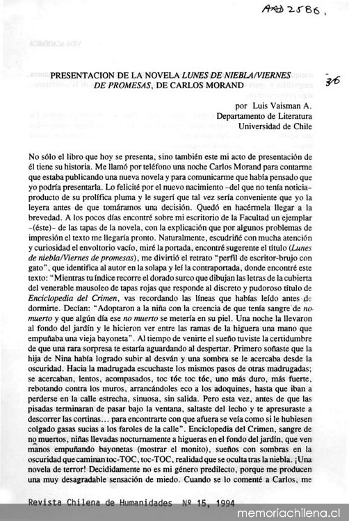 Revista chilena de humanidades / Universidad de Chile, Facultad de Filosofía, Humanidades y Educación. Santiago : La Facultad, 1982- (Santiago : Alfabeta) v., no.15, (1994), p.159-166