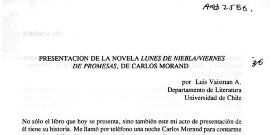 Presentación de la novela "Lunes de niebla, viernes de promesas", de Carlos Morand