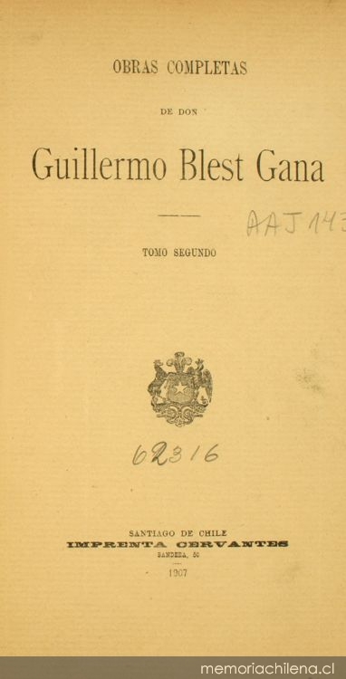 Obras completas de Guillermo Blest Gana. Santiago : Impr. Cervantes, 1907-1909. 3 v.