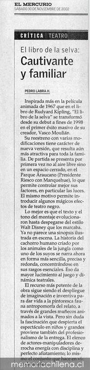 El Mercurio. Santiago : Talleres El Mercurio, 1900- . v., (30 nov. 2002), p. C25