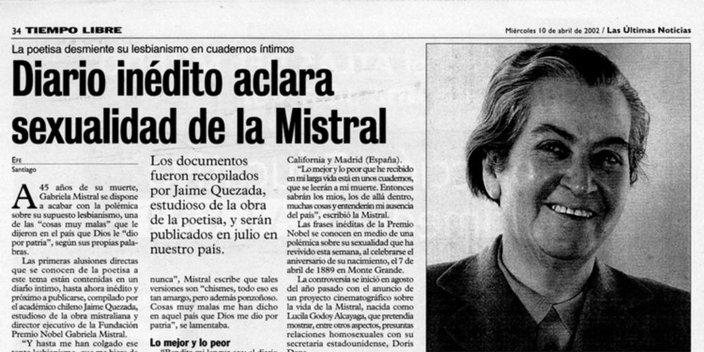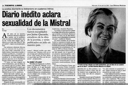 Diario inédito aclara sexualidad de la Mistral