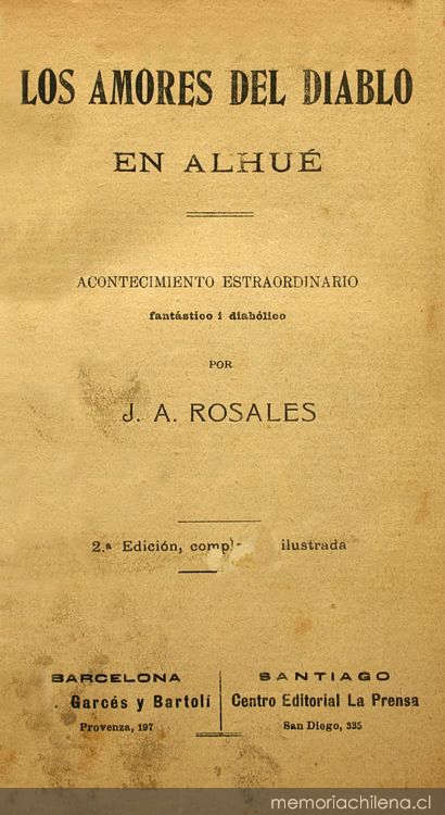 Los amores del diablo en Alhué : acontecimiento estraordinario, fantástico i diabólico