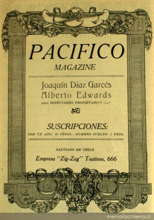 Pacífico magazine. Santiago : Zig-Zag, 1913-1921. 18 v., (mar. 1913)
