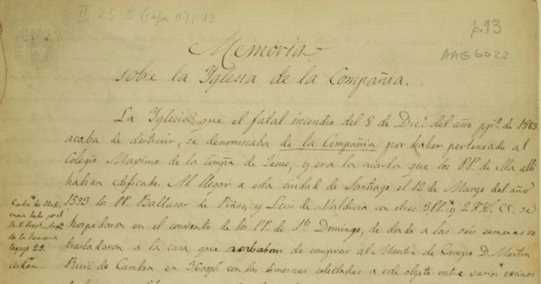 Memoria sobre la Iglesia de la Compañía [manuscrito]