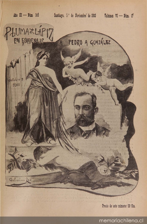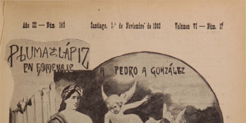 Pluma y lápiz. Santiago : [Editor no identificado], 1900-1904 (Santiago : Imprenta Barcelona), 4 volúmenes, año 3, número 149, (1 noviembre 1903), páginas 2-23