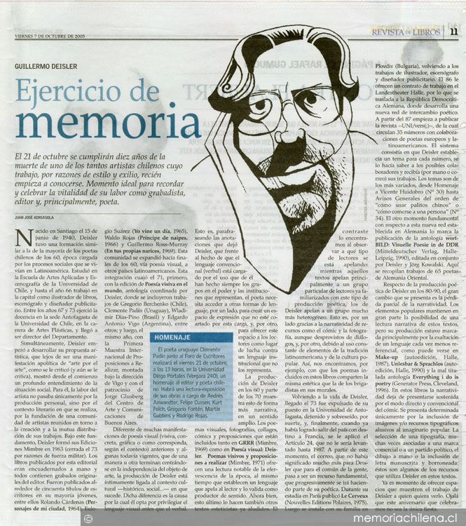 Materias: Autores chilenosDeisler, Guillermo, 1940-