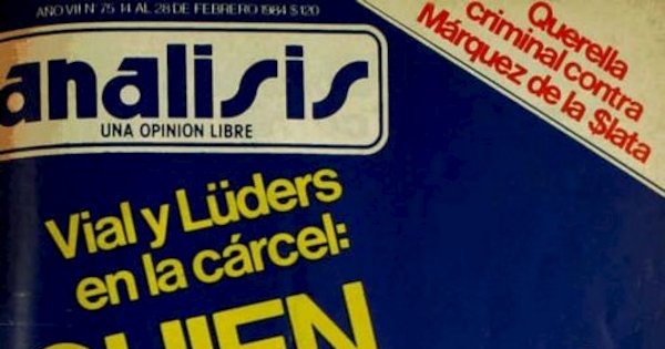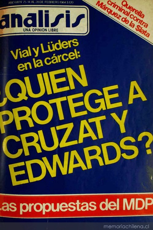 Análisis. Santiago, Soc. Periodística Emisión Limitada, 1977-1993 (Santiago : Ed. Antártica) v., n° 75, (feb. 1984), p. 38-41