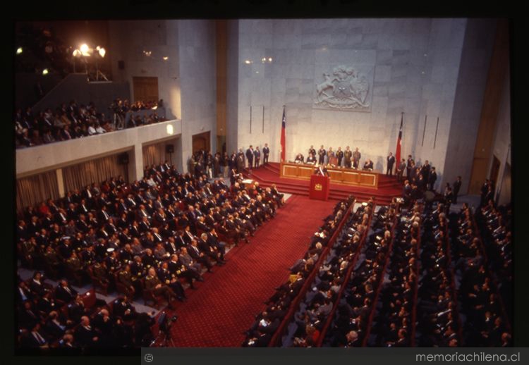 Ceremonia de cambio de mando: Patricio Aylwin asume la presidencia de la república en el Congreso Nacional, 1990