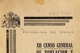 XII Censo general de población y i de vivienda :levantado el 24 de abril de 1952 / República de Chile, Servicio Nacional de Estadística y Censos. Santiago : Servicio Nacional de Estadistica y Censos, 1956-1958 (Santiago : Gutemberg) v.