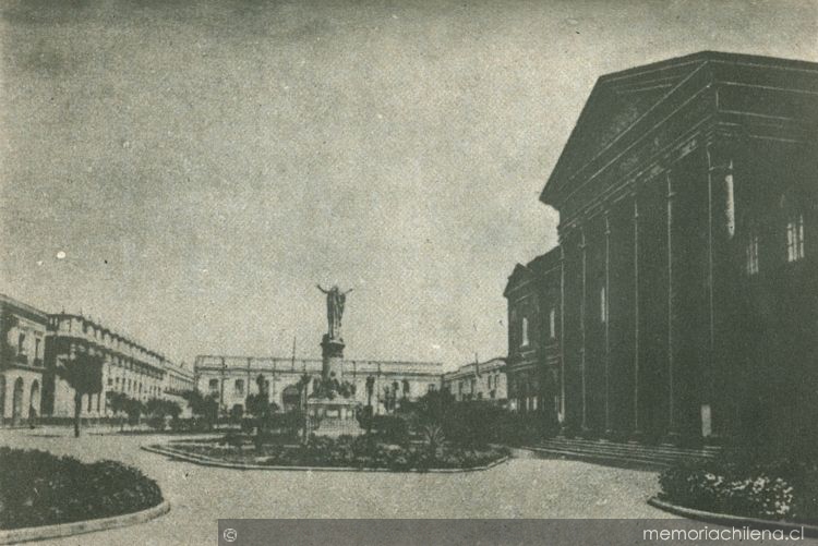 Plazuela de la Compañía, con el Monumento de Carrier-Belleuze y el Congreso Nacional en construcción a la derecha
