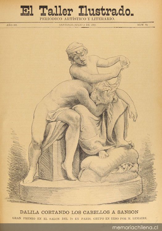 Periódico artístico y literario En portada ilustración "Dalila cortando los cabellos de Sansón"