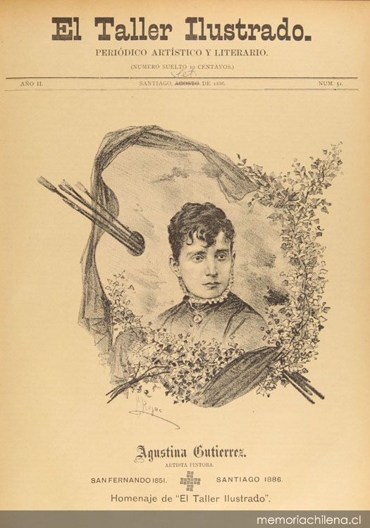 Periódico artístico y literario En portada ilustración "Agustina Gutiérrez, artista pintora" de L. F. Rojas