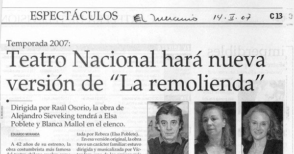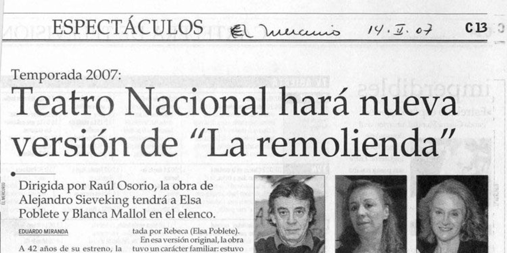 El Mercurio. Santiago : Talleres El Mercurio, 1900- . v., (14 feb. 2007), p. C13