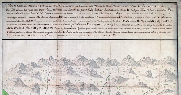 Plano de parte de la hacienda de Rosa de Ahumada, donde se encuentra la villa San Rafael de Rozas, Illapel, 1780