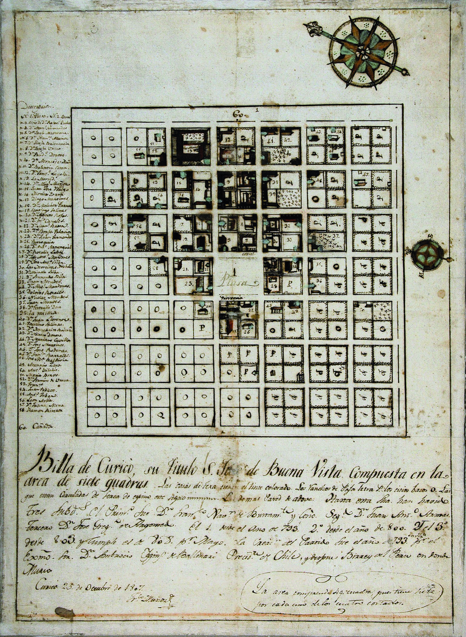 Billa de Curico, su titulo de Villa Buena Vista compuesta en la area de siete guadras, 1807