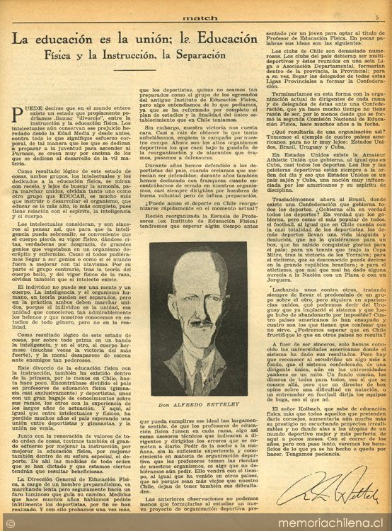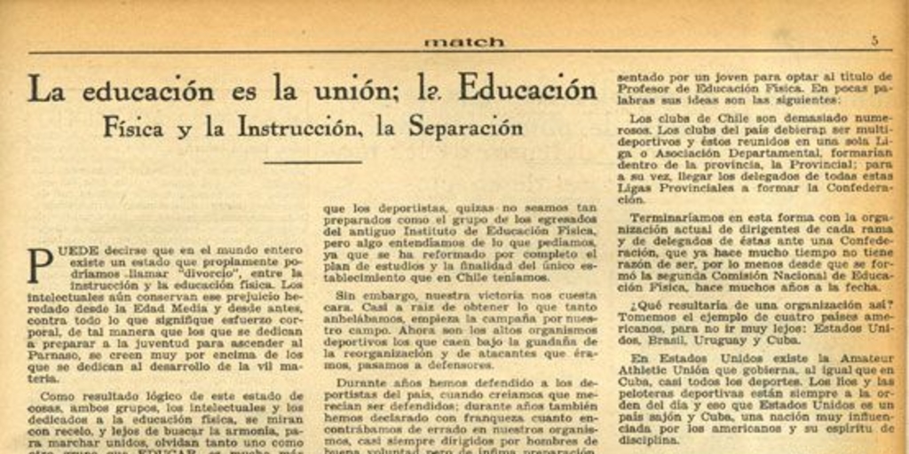 La educación es la unión ; la Educación Física y la Instrucción, la separación