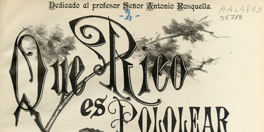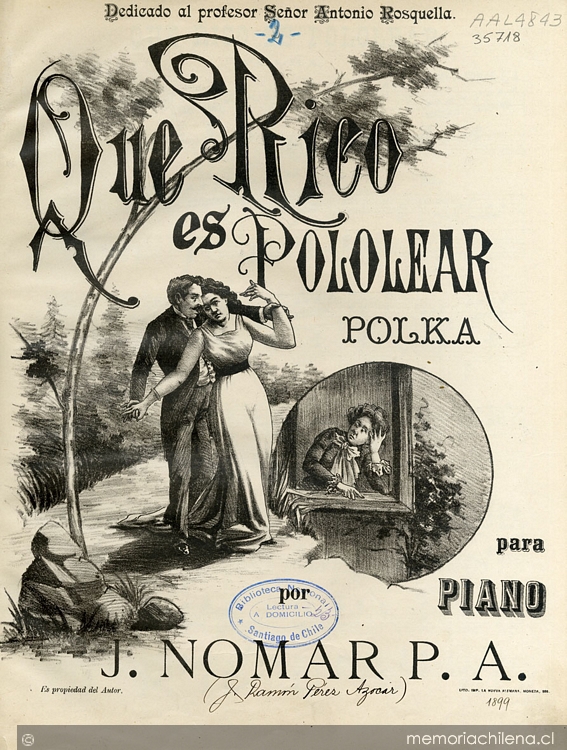 Que rico es pololear [música] : polka para piano / por J. [Normar] P. A. [S. l.] : La Nueva Alemana, [1899?] 1 partitura (2 p.)