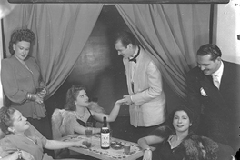 María Elena Gertner, Mario Ortega, Marta Ubilla y Rosita Muñoz, realizando un radioteatro en la radio Agricultura, 1950