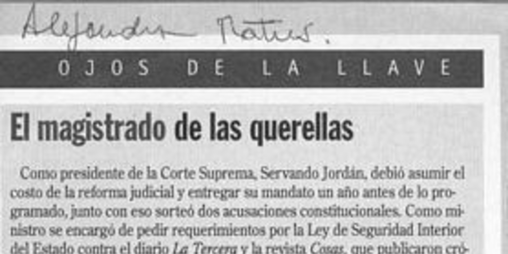 Qué Pasa. Santiago : Segunda Ed. Portada, 1971- (Santiago : Edit. Antártica) v., no., 1463 (24 abril 1999), p. 7