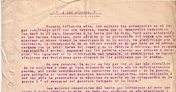 Correspondencia de la Secretaria General del Movimiento Pro-Emancipación de las Mujeres de Chile (MEMCH), Elena Caffarena, 1935