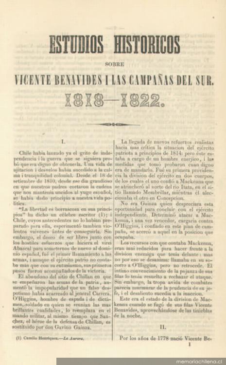 Estudios históricos sobre Vicente Benavides i las campañas del Sur : 1818-1822
