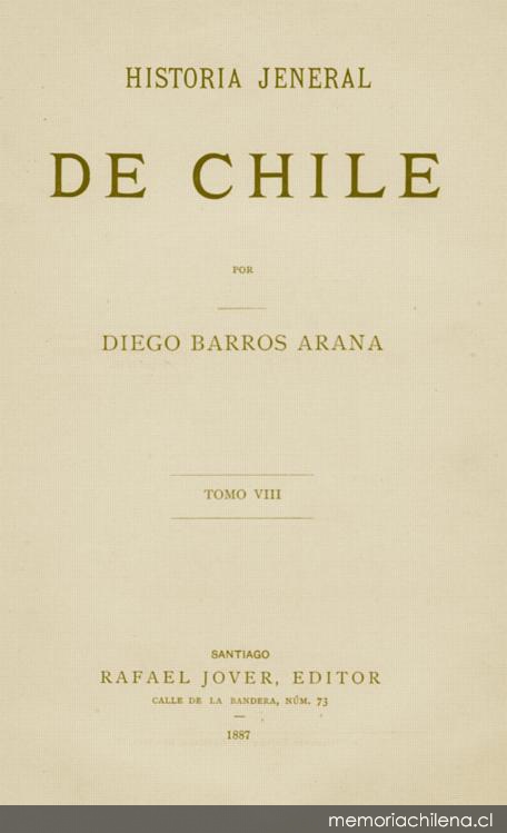 Historia jeneral de Chile / por Diego Barros Arana. Santiago : Rafael Jover editor, 1884-1902. 16 volúmenes, [66] páginas de láminas (algunas plegadas)