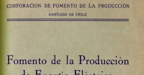 Fomento de la producción de energía eléctrica : plan de acción inmediata del Departamento de Energía y Combustibles, aprobado por el Consejo de la Corporación de Fomento de la producción, con fecha 23 de agosto de 1939