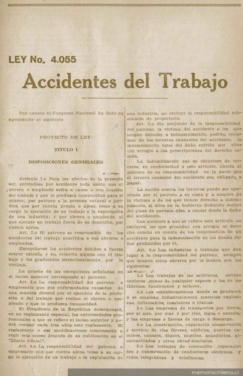 Ley no. 4.055 : accidentes del trabajo